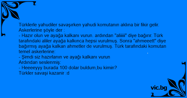 Türklerle yahudiler savaşırken yahudi komutanın aklına bir fikir gelir.