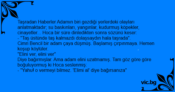 Cimri Bencil bir adam çaya düşmüş. Başlamış çırpınmaya. Hemen koşup köylüler.