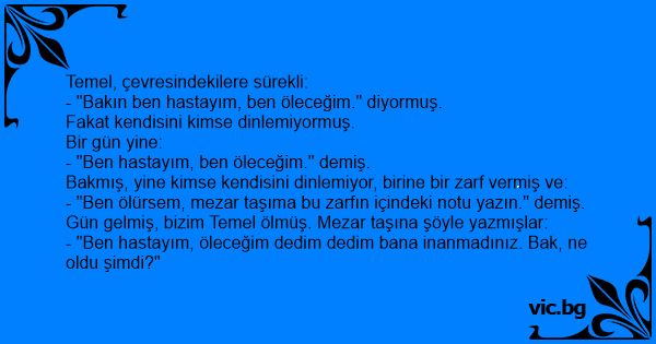 - "Ben ölürsem, mezar taşıma bu zarfın içindeki notu yazın." demiş.