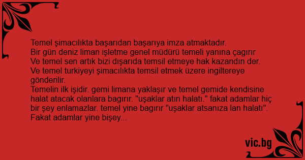 Temelin ilk işidir. gemi limana yaklaşır ve temel gemide kendisine halat atacak olanlara bagırır. "uşaklar atın halatı." fakat adamlar hiç bir şey enlamazlar. temel yine bagırır "uşaklar atsanıza lan halatı".
