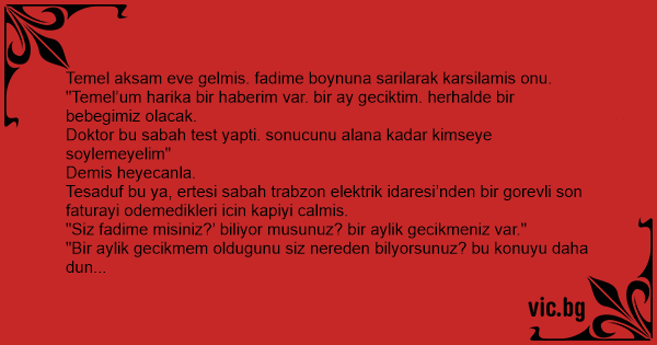 "Temel’um harika bir haberim var. bir ay geciktim. herhalde bir bebegimiz olacak.