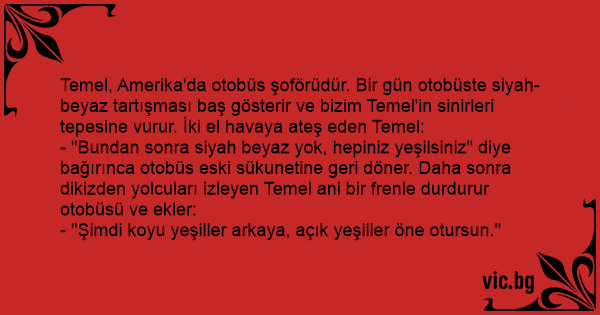 - "Bundan sonra siyah beyaz yok, hepiniz yeşilsiniz" diye bağırınca otobüs eski sükunetine geri döner. Daha sonra dikizden yolcuları izleyen Temel ani bir frenle durdurur otobüsü ve ekler: