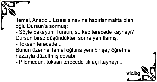 Temel, Anadolu Lisesi sınavına hazırlanmakta olan oğlu Dursun'a sormuş: