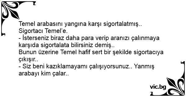 Temel arabasını yangına karşı sigortalatmış.. Sigortacı Temel’e.