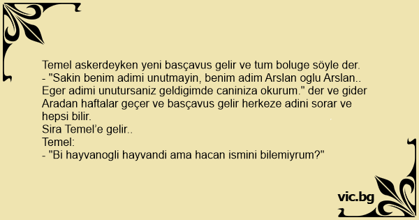Temel askerdeyken yeni basçavus gelir ve tum boluge söyle der.