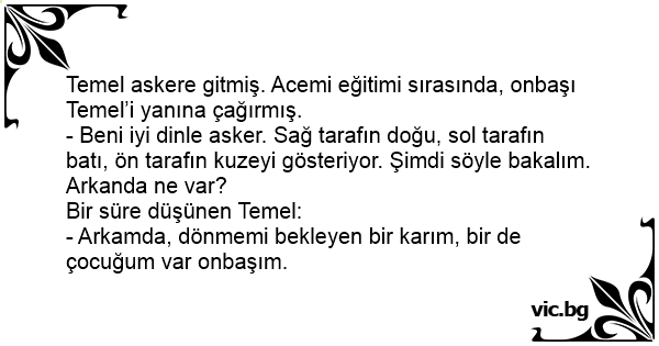 Temel askere gitmiş. Acemi eğitimi sırasında, onbaşı Temel’i yanına çağırmış.