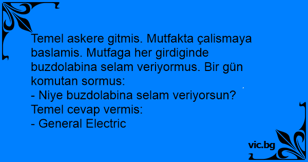 Temel askere gitmis. Mutfakta çalismaya baslamis. Mutfaga her girdiginde buzdolabina selam veriyormus. Bir gün komutan sormus:
