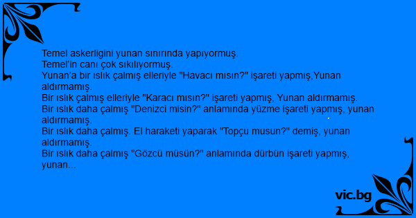- "Ben oraya gitmem. Orada bir deli türk askeri var, bana hava kararınca yüzerek gelip sana bir koyacam gözlerin fırlayacak diyor.."