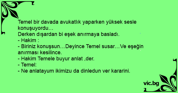 - Biriniz konuşsun…Deyince Temel susar…Ve eşeğin anırması kesilince.