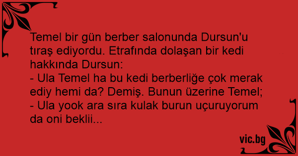 - Ula Temel ha bu kedi berberliğe çok merak ediy hemi da? Demiş. Bunun üzerine Temel;