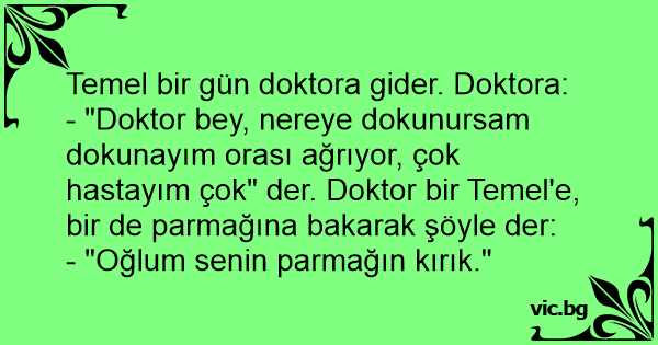 - "Doktor bey, nereye dokunursam dokunayım orası ağrıyor, çok hastayım çok" der. Doktor bir Temel'e, bir de parmağına bakarak şöyle der: