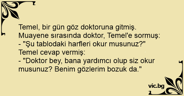 - "Doktor bey, bana yardımcı olup siz okur musunuz? Benim gözlerim bozuk da."