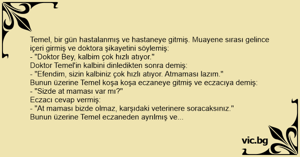 Temel, bir gün hastalanmış ve hastaneye gitmiş. Muayene sırası gelince içeri girmiş ve doktora şikayetini söylemiş:
