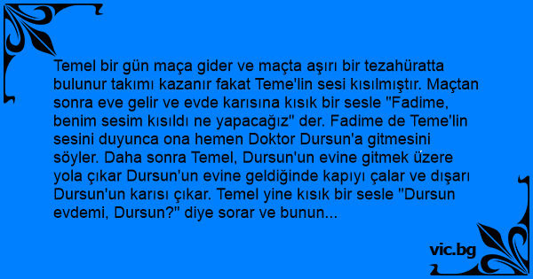 Temel bir gün maça gider ve maçta aşırı bir tezahüratta bulunur takımı kazanır fakat Teme'lin sesi kısılmıştır. Maçtan sonra eve gelir ve evde karısına kısık bir sesle "Fadime, benim sesim kısıldı ne yapacağız" der. Fadime de Teme'lin sesini duyunca ona hemen Doktor Dursun'a gitmesini söyler. Daha sonra Temel, Dursun'un evine gitmek üzere yola çıkar Dursun'un evine geldiğinde kapıyı çalar ve dışarı Dursun'un karısı çıkar. Temel yine kısık bir sesle "Dursun evdemi, Dursun?" diye sorar ve bunun üzerine Dursun'un karısıda kısık bir sesle cevaplar. "Yok! yok! gel."