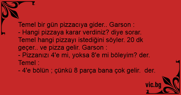 Temel bir gün pizzacıya gider.. Garson :