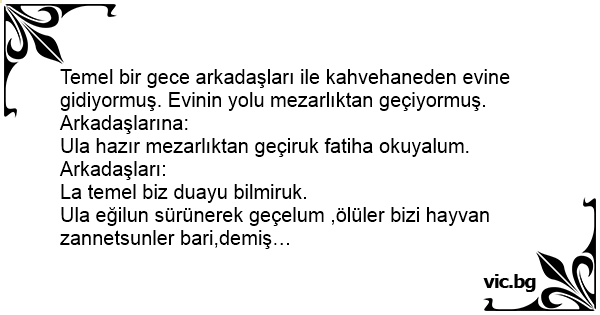 Temel bir gece arkadaşları ile kahvehaneden evine gidiyormuş. Evinin yolu mezarlıktan geçiyormuş. Arkadaşlarına: