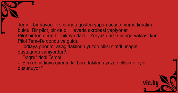 - "Iddiaya girerim, asagidakilerin yuzde ellisi simdi ucagin dustugunu saniyordur?.."