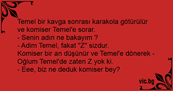 Komiser bir an düşünür ve Temel'e dönerek - Oğlum Temel'de zaten Z yok ki.