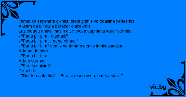 - "Bana bir bira" demis ve tamam demis inmis asagiya.