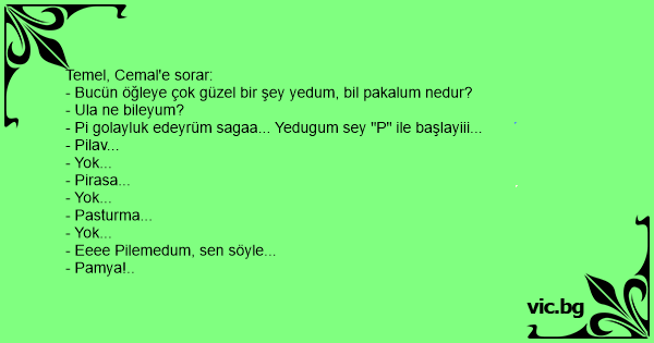 - Bucün öğleye çok güzel bir şey yedum, bil pakalum nedur?