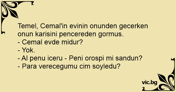 Temel, Cemal'in evinin onunden gecerken onun karisini pencereden gormus.