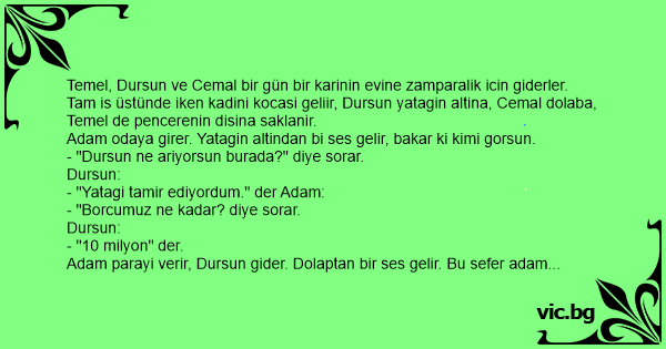 Temel, Dursun ve Cemal bir gün bir karinin evine zamparalik icin giderler.