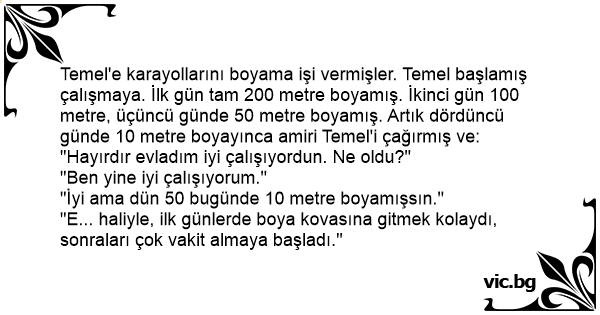 "İyi ama dün 50 bugünde 10 metre boyamışsın."