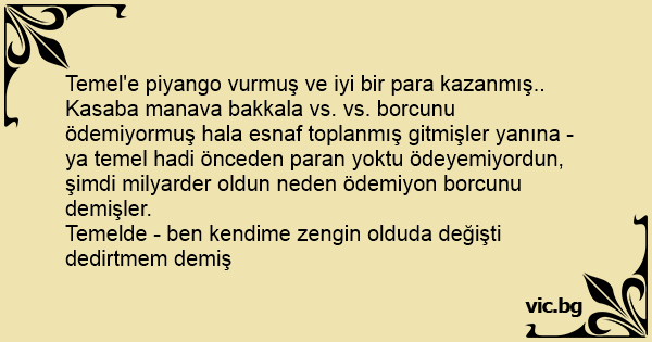 Kasaba manava bakkala vs. vs. borcunu ödemiyormuş hala esnaf toplanmış gitmişler yanına - ya temel hadi önceden paran yoktu ödeyemiyordun, şimdi milyarder oldun neden ödemiyon borcunu demişler.