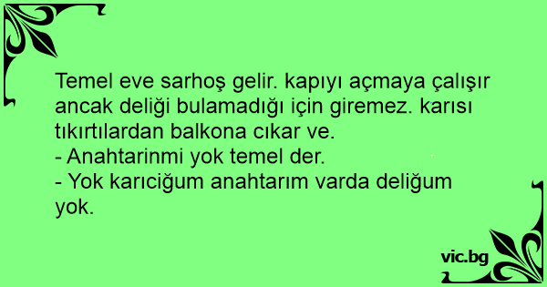Temel eve sarhoş gelir. kapıyı açmaya çalışır ancak deliği bulamadığı için giremez. karısı tıkırtılardan balkona cıkar ve.