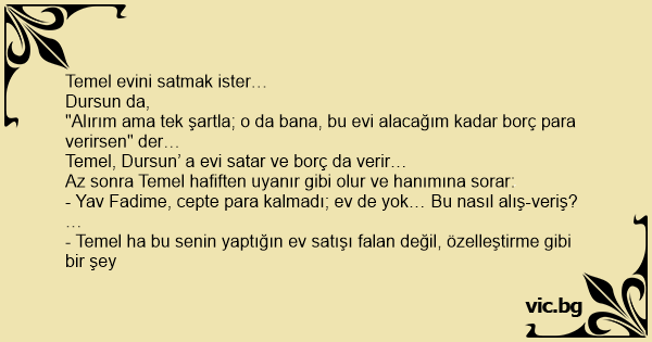 "Alırım ama tek şartla; o da bana, bu evi alacağım kadar borç para verirsen" der…