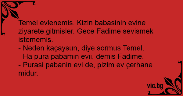 Temel evlenemis. Kizin babasinin evine ziyarete gitmisler. Gece Fadime sevismek istememis.