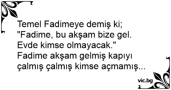 Temel Fadimeye demiş ki; "Fadime, bu akşam bize gel. Evde kimse olmayacak."