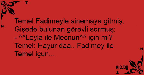 - ^^Leyla ile Mecnun^^ için mi? Temel: Hayur daa.. Fadimey ile Temel içun...