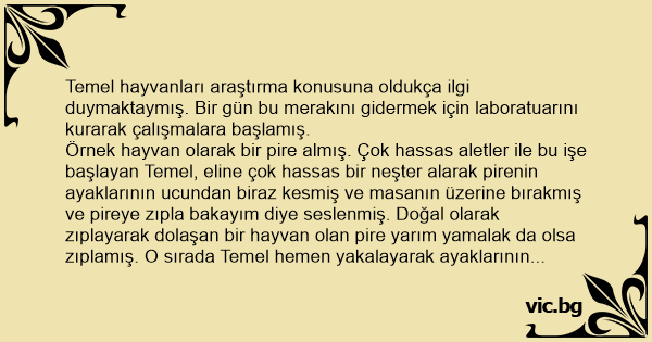 Fakat ayakları kesilen pireden hiçbir hareket yok..... Temel hemen kalem kağıdı alarak raporu yazmaya başlamış:
