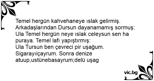 Ula Tursun ben çevreci pir uşağum. Sigarayıiçayrum. Sonra denize atuup,ustünebasayrum;delü uşag