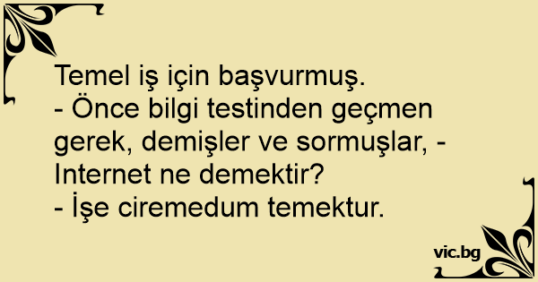 - Önce bilgi testinden geçmen gerek, demişler ve sormuşlar, - Internet ne demektir?