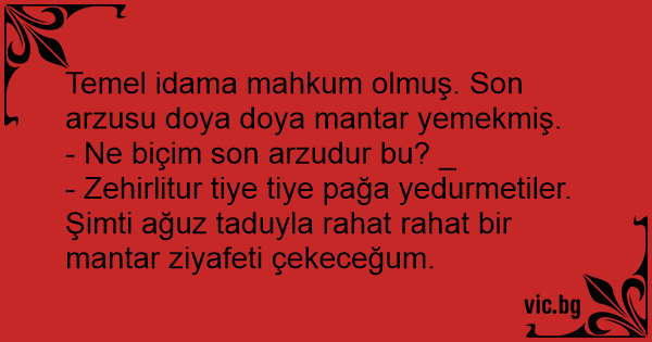 Temel idama mahkum olmuş. Son arzusu doya doya mantar yemekmiş.