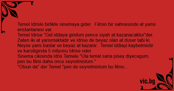 Temel Idrise "Gel iddaya girelum pence siyah at kazanacaktur"der.