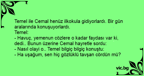 - Havuç, yemenun cözlere o kadar faydası var ki, dedi.. Bunun üzerine Cemal hayretle sordu: