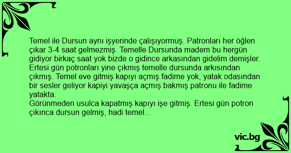 Temel ile Dursun aynı işyerinde çalışıyormuş. Patronları her öğlen çıkar 3-4 saat gelmezmiş. Temelle Dursunda madem bu hergün gidiyor birkaç saat yok bizde o gidince arkasından gidelim demişler.