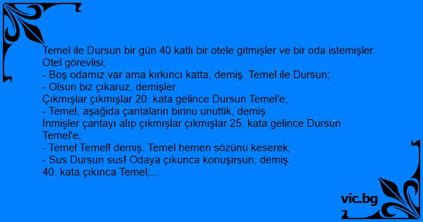 Temel ile Dursun bir gün 40 katlı bir otele gitmişler ve bir oda istemişler. Otel görevlisi;