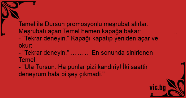 Temel ile Dursun promosyonlu meşrubat alırlar. Meşrubatı açan Temel hemen kapağa bakar: