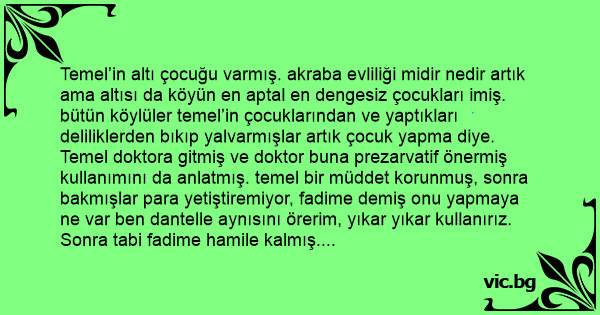 Temel’in altı çocuğu varmış. akraba evliliği midir nedir artık ama altısı da köyün en aptal en dengesiz çocukları imiş. bütün köylüler temel’in çocuklarından ve yaptıkları deliliklerden bıkıp yalvarmışlar artık çocuk yapma diye.