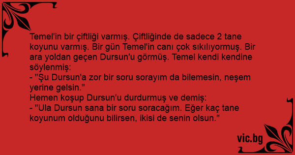 - "Ula Dursun sana bir soru soracağım. Eğer kaç tane koyunum olduğunu bilirsen, ikisi de senin olsun."