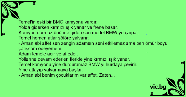Temel BMW ye yine gömer. Bu sefer kafasını camdan çıkarıp bağırır.