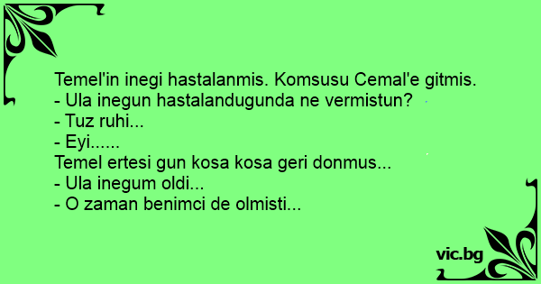 Temel'in inegi hastalanmis. Komsusu Cemal'e gitmis.