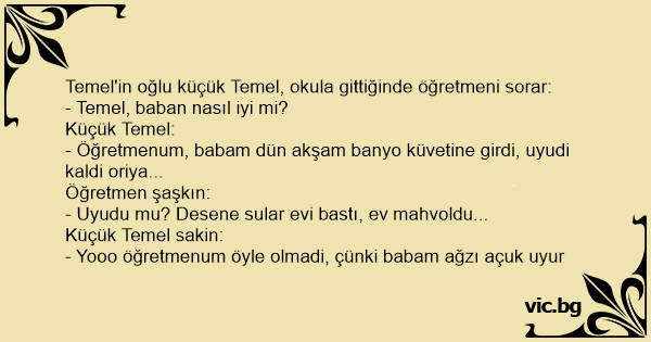 - Yooo öğretmenum öyle olmadi, çünki babam ağzı açuk uyur