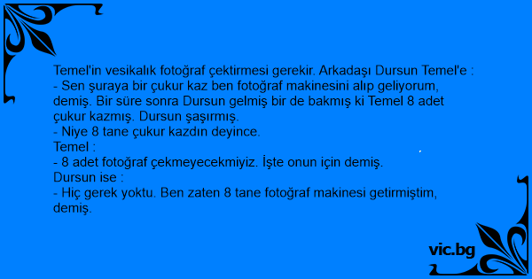 Temel'in vesikalık fotoğraf çektirmesi gerekir. Arkadaşı Dursun Temel'e :
