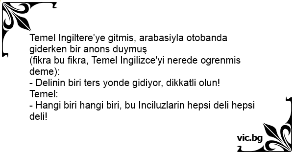 Temel Ingiltere'ye gitmis, arabasiyla otobanda giderken bir anons duymuş