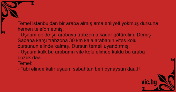 Temel istanbuldan bir araba almış ama ehliyeti yokmuş dursuna hemen telefon etmiş: